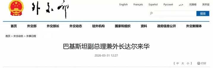 中国外交部刚刚发布消息:应外交部长王毅邀请,巴基斯坦外长达尔将于3月31日来华,同王毅外长就当前国际和地区冲突问题和双边关系举行会谈。