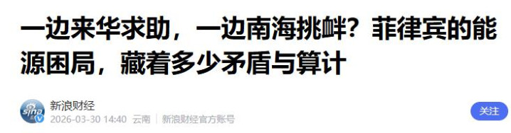 《一边来华求助,一边南海挑衅?菲律宾的能源困局,藏着多少矛盾与算计》新浪财经